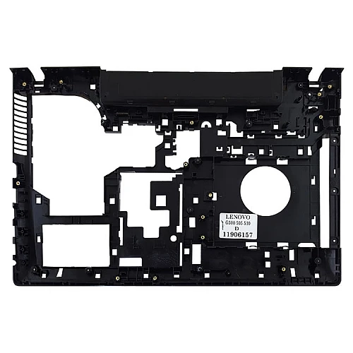 قاب زیرین لپ تاپ Lenovo Ideapad G500 مسئولیت نگهداری از حساس ترین قطعه لپتاپ یعنی مادربرد را برعهده دارد. سلامت قاب D یا همان قاب کف لپ تاپ به این دلیل حائز اهمیت می باشد که از اصلی ترین قطعه یعنی مادربرد محافظت می نماید و یکی از قطعاتی است که فشار و وزن قطعات دیگر نوت بوک را متحمل می شود. Case D لپ تاپ لنوو G500 از مواد و آلیاژ های پلاستیکی ساخته شده است.